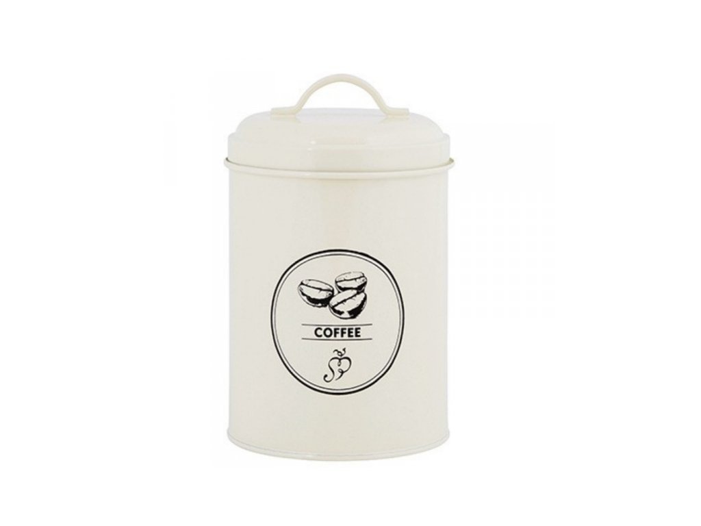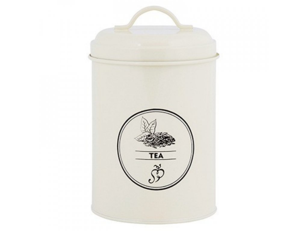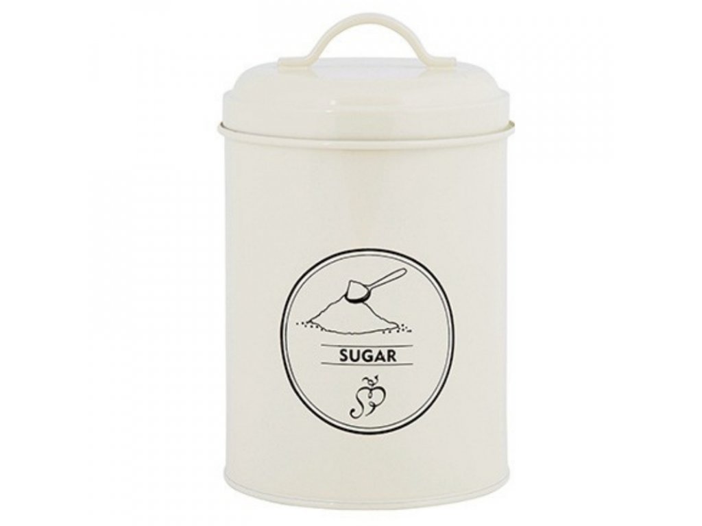 Krásna sada plechových dóz na cukor, kávu a čaj v krémovej alebo šedej farbe s originálnym nápisom „Cukor, čaj a káva“ spolu s obrázkom cukru, kávových zŕn alebo čajových listov dodá vašej kuchyni čaro.