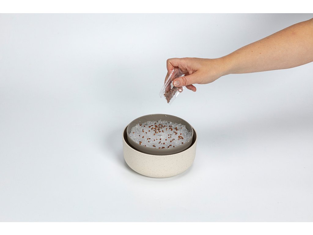 Potrebujete len semienka, gél alebo perlan a za 6 dní môžete žať úrodu. No rýchlosť rastu rastliniek od zasiatia po zber závisí od druhu semienok. Vo fáze rastu si rastlinka vystačí s vlastnými živinami, vodou a svetlom. A po zbere rastliniek je možné jednoducho použitý perlan alebo gél skompostovať vo vermikompostéri alebo v Bokashi kompostéri v pohodlí vášho domova.