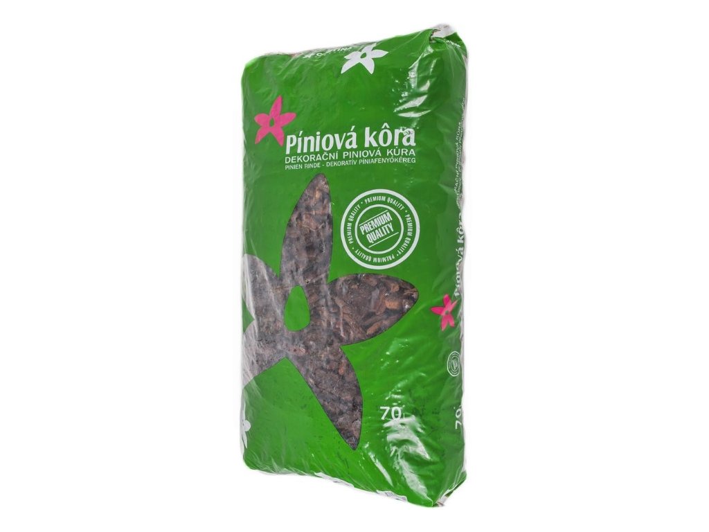Píniová kôra dekoračná na mulčovanie záhonov, okolia ovocných a okrasných stromov a krov, chodníkov a kvetináčov. Chráni pôdu pred odparovaním vody, podporuje zdravý rast rastlín a eliminuje prerastanie burín, pričom nebráni prístupu vzduchu ani vody. Dekoračná píniová kôra najvyššej kvality bez vláknitých prímesí sa dá použiť v exteriéri aj interiéri, je ideálna do záhrad, parkov a sadov. K dispozícii rôzne frakcie.