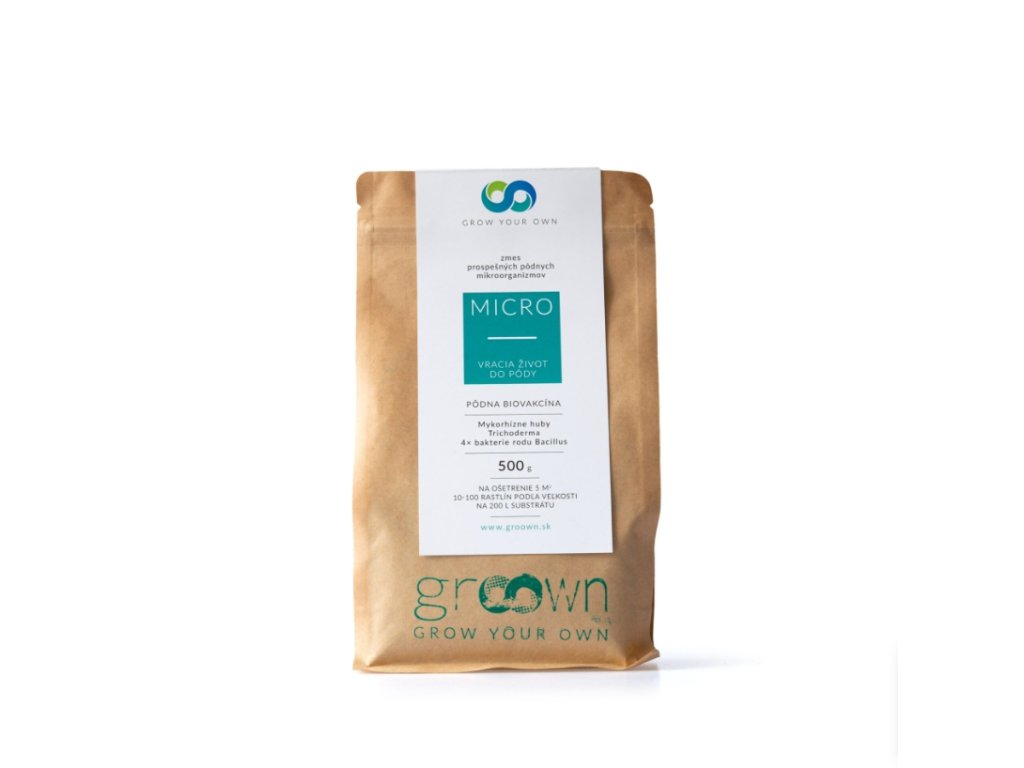 Pôdny kondicionér GROOWN MICRO obsahuje 6 prospešných pôdnych mikroorganizmov na oživenie pôdy alebo substrátu. Prítomnosť pôdnych mikroorganizmov prináša pre rastliny lepšie získavanie živín. Rastliny sú zdravšie a viac odolné voči stresu, pôdnym patogénom, suchu a iným vplyvom okolia. Prípravok je vhodný na bylinky, izbové rastliny, kvety, ovocné a okrasné stromy a kry aj trávnik.