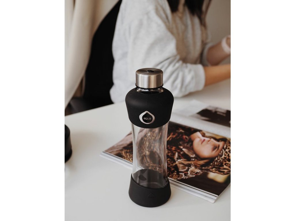 Sklenená fľaša EQUA ACTIVE Black, 550 ml na šport aj každý deň