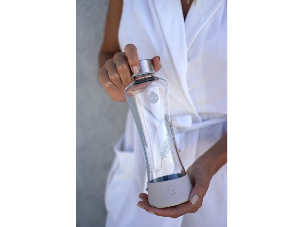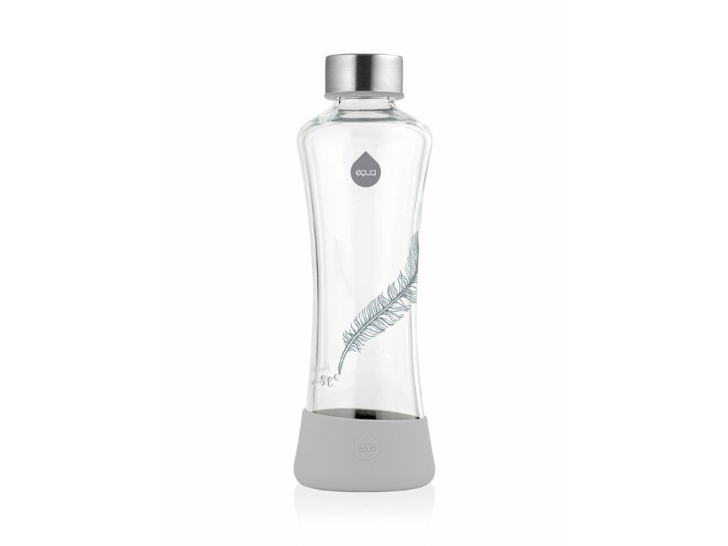 Sklenená fľaša EQUA ACTIVE Squeeze Feather z recyklovateľného borosilikátového skla je ideálna aj na opakované použitie. Vrchnák z kvalitnej nerezovej ocele dodáva fľaši moderný vzhľad a zaručuje ochranu pred vyliatím. Za dizajnom stojí slovinské štúdio Desnahemisfera, ktoré je známe návrhom výrobkov spájajúcich funkčnosť a estetiku s ekologickým myslením. EQUA fľaša s hmotnosťou iba 300 gramov je ľahká, praktická a 100 % recyklovateľná – ideálny spoločník na šport, do práce aj na každodenné cestovanie.